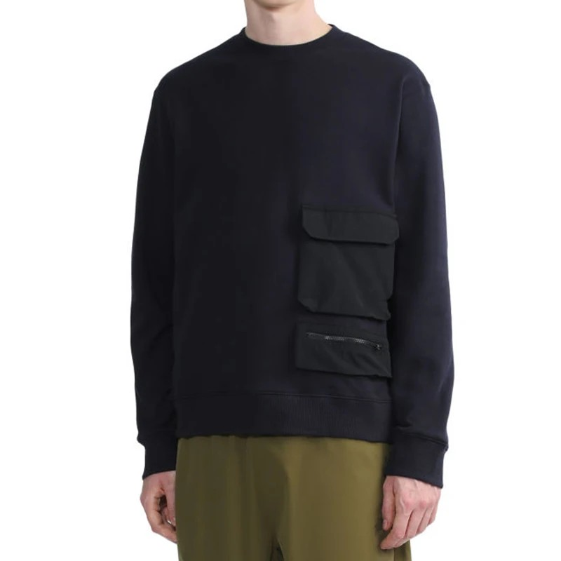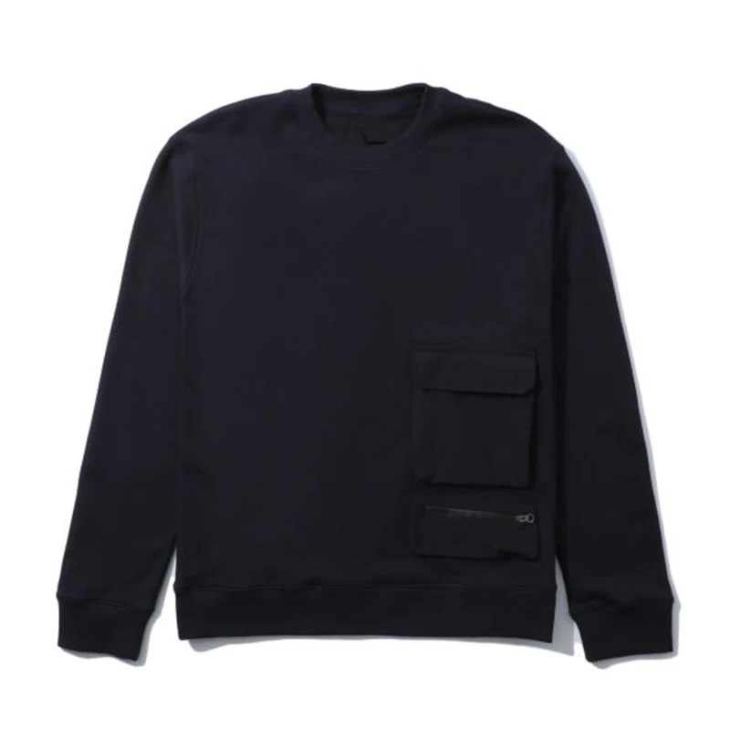 Designed with a classic crew neckline and utility-inspired chest pocket detail, this pullover adds a subtle functional edge to a clean silhouette. Ribbed cuffs and hem ensure a comfortable fit that holds its shape throughout the day.